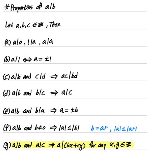 - $ a\mid b $ 성질